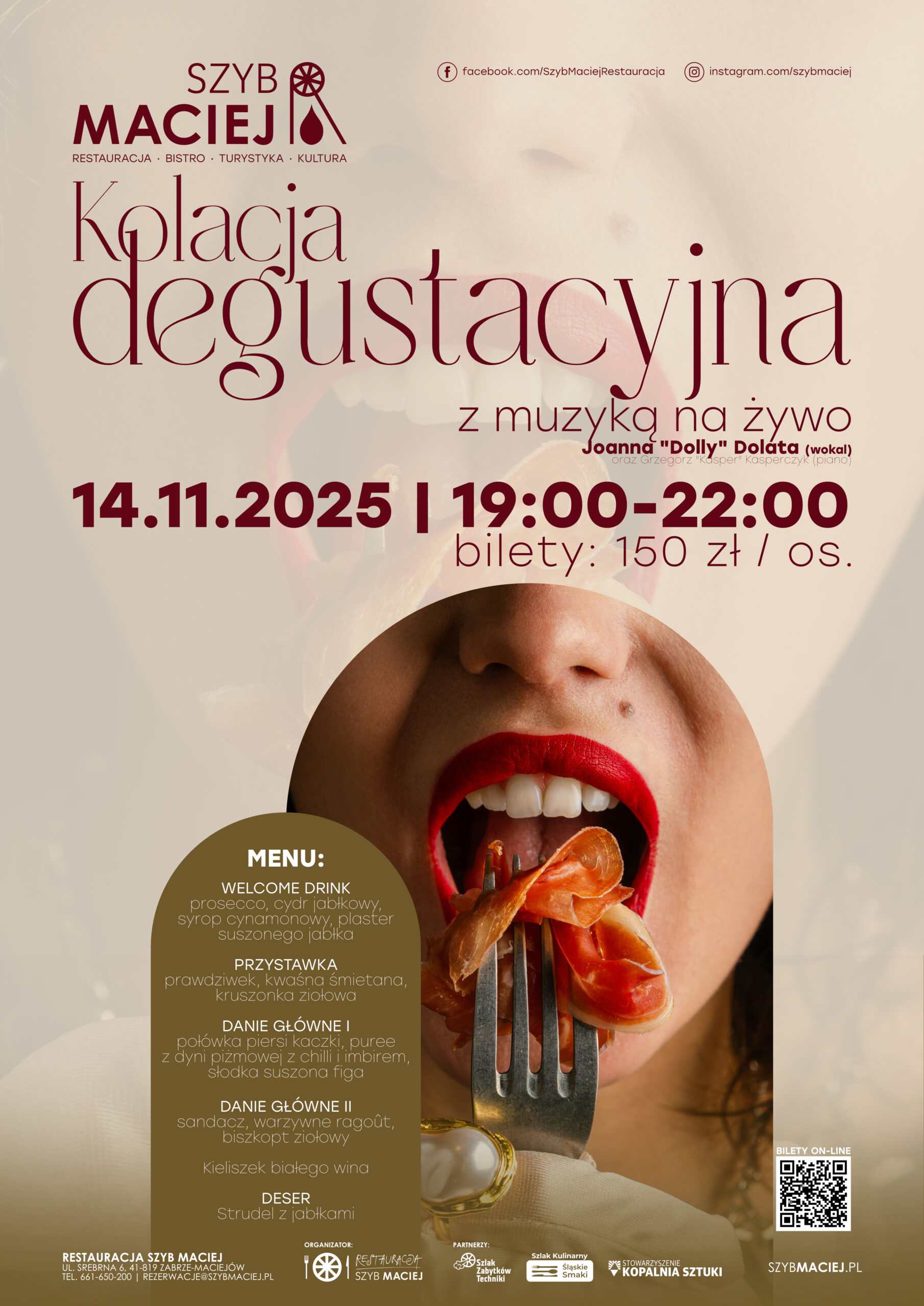 Wydarzenie odbywa się w Restauracji Szyb Maciej (ul. Srebrna 6, 41-819 Zabrze) w dniu 14 listopada 2025 r. od godz. 19:00. Organizatorzy zastrzegają sobie prawo do odwołania wydarzenia bez podania przyczyny. Bilety dostępne wyłącznie on-line – ograniczona ilość miejsc! Niewykorzystane wejściówki nie podlegają zwrotowi!